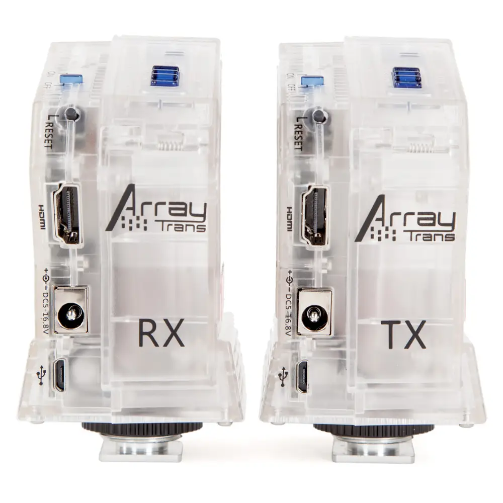 Mit einer Reichweite von bis zu 80 Metern und der Unterstützung von unkomprimiertem 1080p-Video ist das Array Trans Wireless Video Sender/Empfänger-Set von Aputure einfach zu koppeln und ermöglicht die drahtlose Videoübertragung von Ihrer Kamera zum gekoppelten Empfänger.