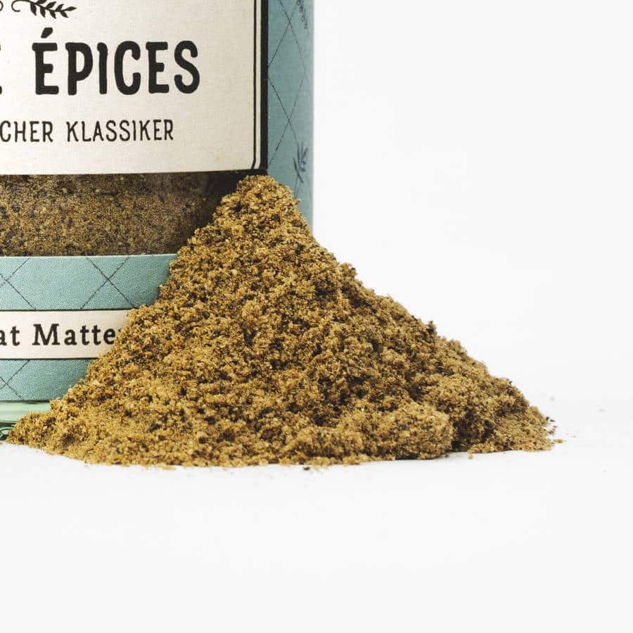 Quatre Épices ist eine französische Gewürzmischung mit acht sorgfältig ausgewählten Zutaten, die sowohl herzhafte als auch süße Gerichte verfeinert.