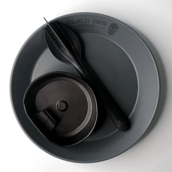 The Alpha camping set from Black Ops Coffee is the perfect accessory for all outdoor enthusiasts looking for high-quality, lightweight and durable camping gear. The set includes a Fernspäh cutlery, an outdoor plate and a folding cup, all made of high quality materials to withstand the demands of outdoor activities.