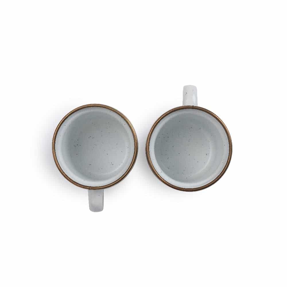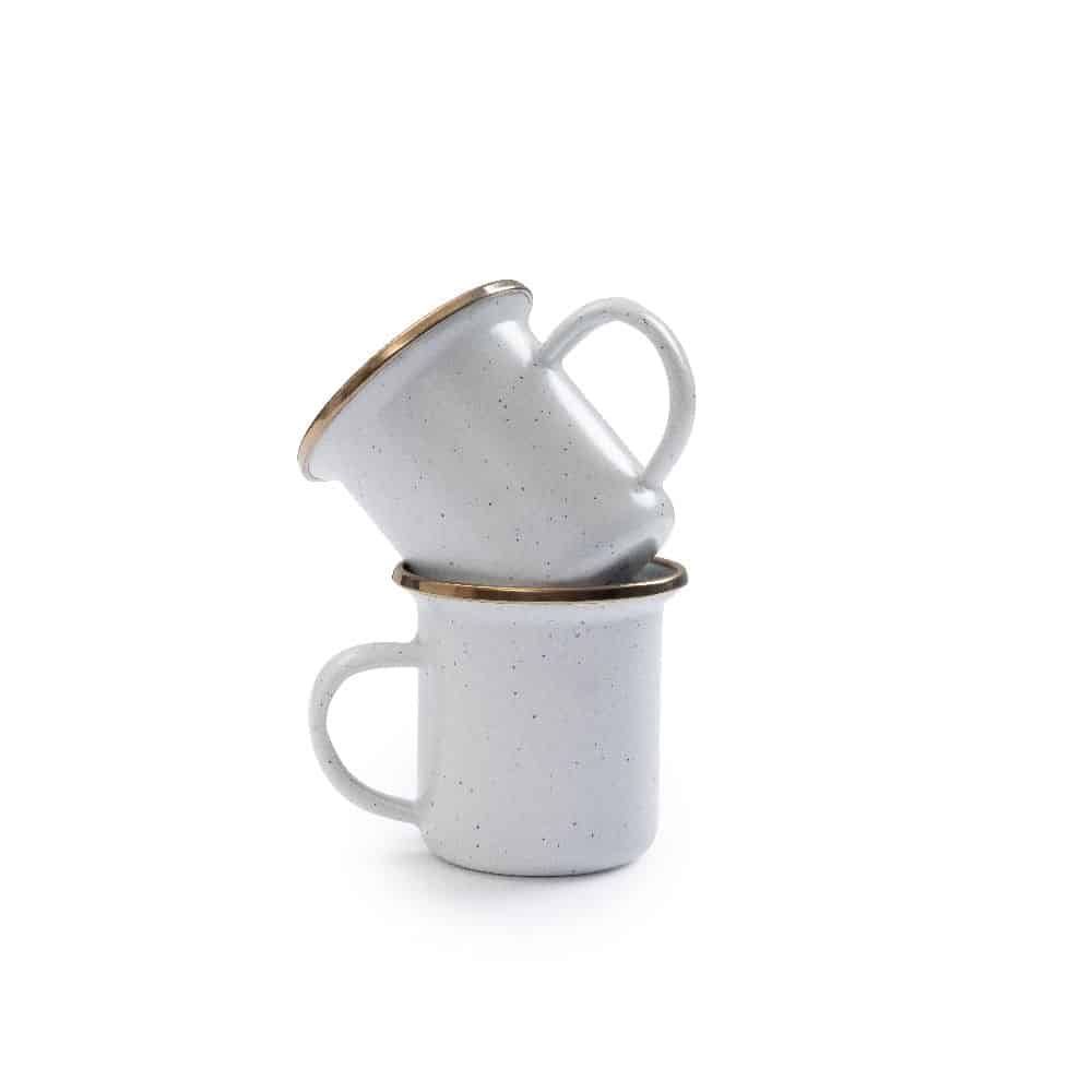 Kombiniere die Espressotassen perfekt mit dem kupferfarbenen Besteck und weiteren Teilen der Kollektion, wie kleinen Tellern und großen Tellern, Bechern, einem Stieltopf, Schüsseln oder einer Teekanne. Die Emaille-Kollektion ist bei uns in Egg-Shell, Mint und Slate Grey erhältlich.
