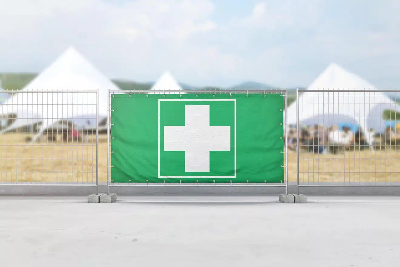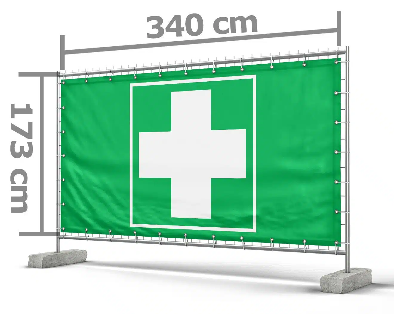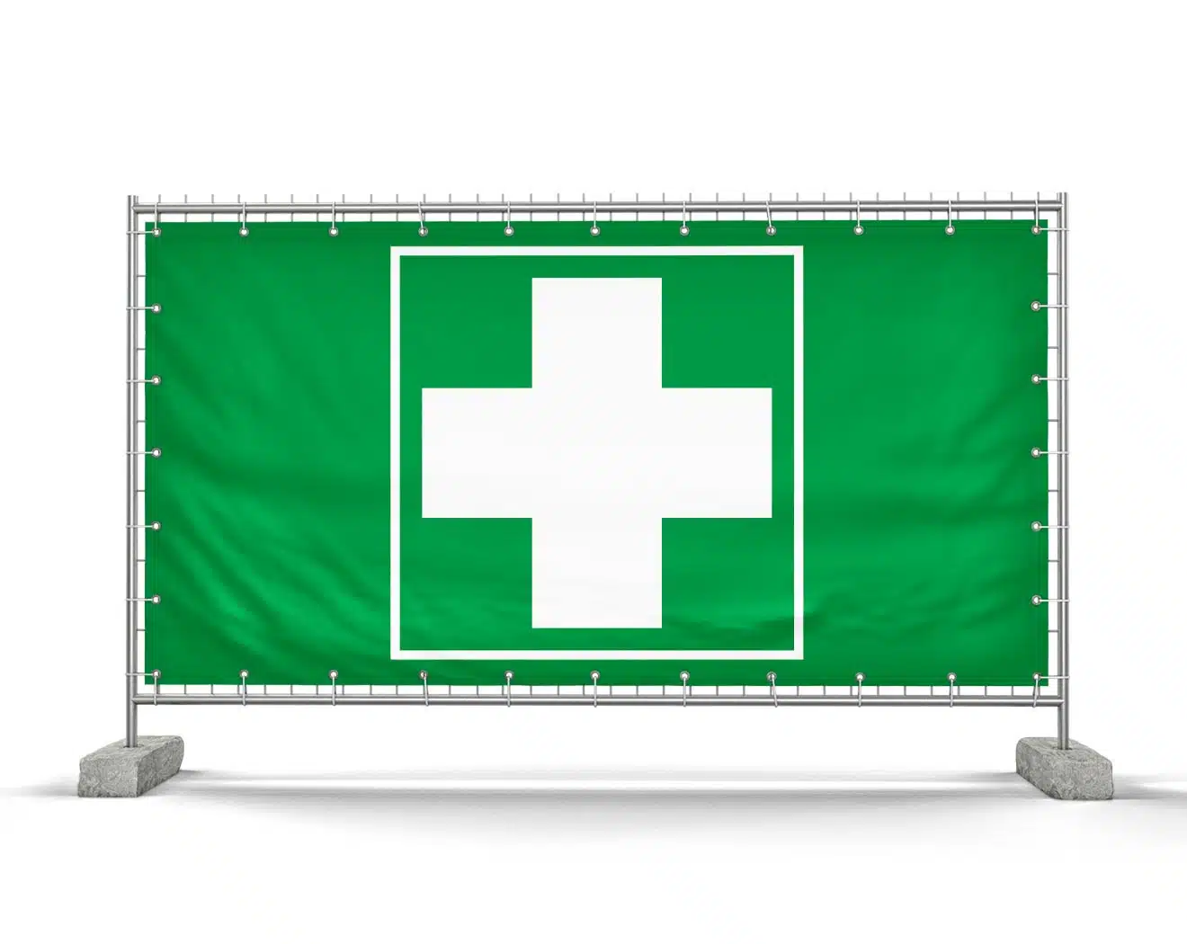 Erste-Hilfe Bauzaunbanner – Werbebanner bedrucken lassen