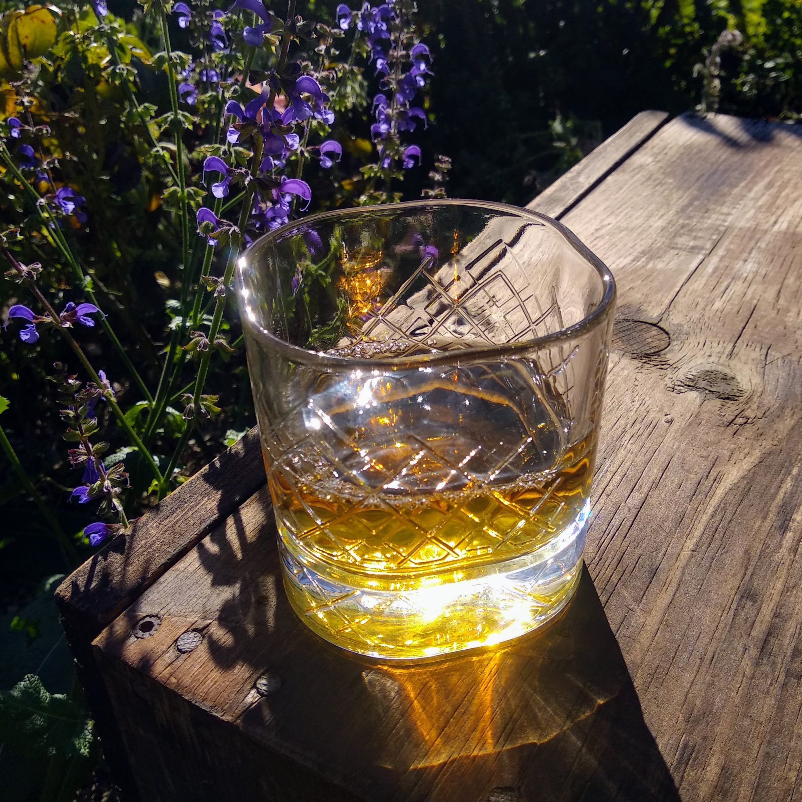 Whiskey & Honey; GIN, Honigwein, Met, Mineralwasser, Bio-Streuobstapfelsaft, mit genügend Platz für einen großen 50 x 50 x 50 mm Eiswürfel