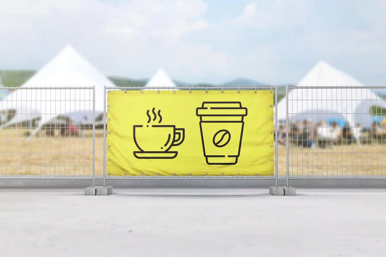 Kaffeestand Bauzaunbanner – Werbebanner bedrucken lassen