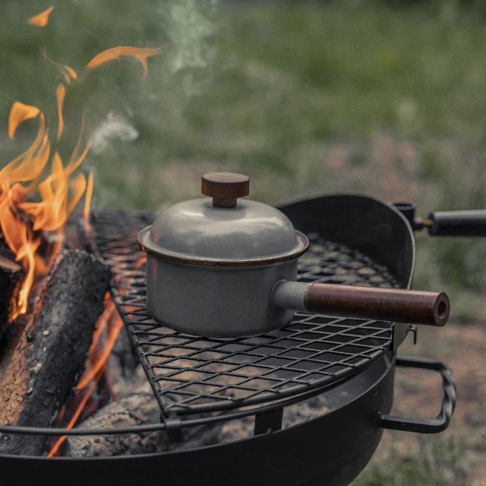 Mit dem schiefergrauen Emaille-Stieltopf von Barebones bringst du zeitlosen Stil und Robustheit in deine Outdoorküche. Der edle Kupferrand ist ein echter Hingucker und verleiht jedem Stück eine besondere Eleganz. Der kleine Stieltopf wird schnell zum Schmuckstück in deiner Küche und macht sich perfekt beim Servieren und Zubereiten deiner Lieblingsgerichte.