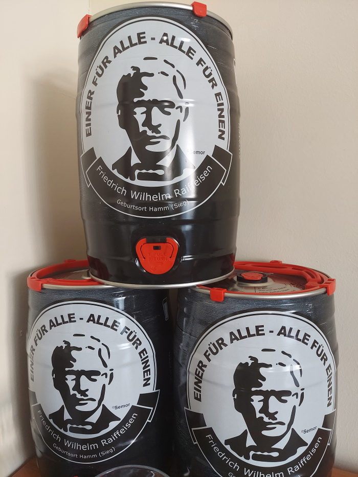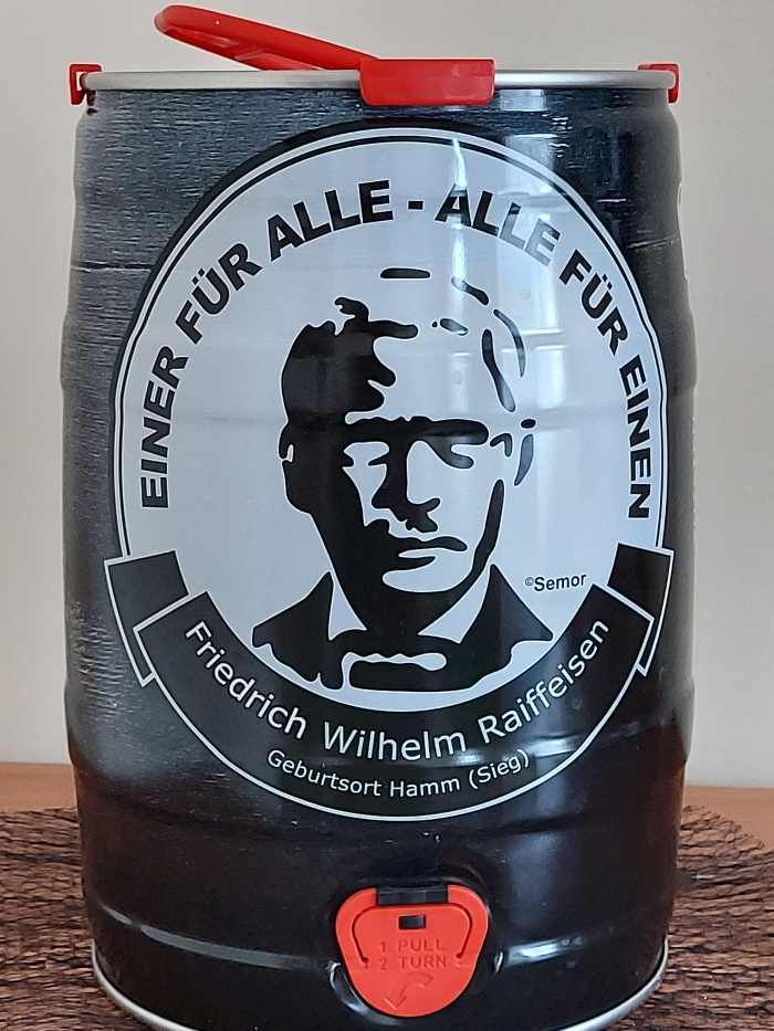 Das Raiffeisen-Bier ist ein Produkt aus der heimischen Region des F.-W. Raiffeisen. Diese dunkle, obergärige Bierspezialität wird nach einem alten Rezept gebraut und verdankt ihren besonderen Geschmack der Komposition von ausgesuchten, dunklen Malzsorten und der hervorragenden Qualität des Brauwassers aus eigener Quelle. Es ist vollmundig und feinwürzig, mit einer leichten Rauchigkeit. Eine leichte Hopfennote rundet den Geschmack des Biers ab.