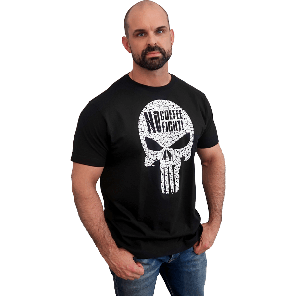 Das Skull Shirt ist in verschiedenen Größen erhältlich und kann von Männern und Frauen gleichermaßen getragen werden. Mit einem modernen, schlanken Schnitt und einem auffälligen Design, ist dieses Shirt nicht nur bequem, sondern auch stilvoll. Das Design mit dem Schädel aus Kaffeebohnen und dem Slogan “No Coffee, No Fight” macht dieses Shirt zu einem einzigartigen Kleidungsstück, das Ihre Liebe zum Kaffee und zum Leben zeigt.